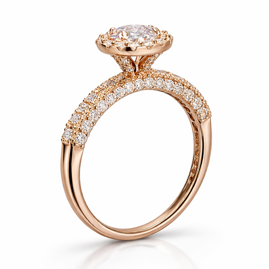 Rose Gold CZ Halo Ring | 925 Sterling Silver