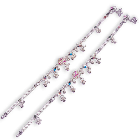 Fancy Silver Peacock Payal for Women by Jauhari Jewellers
