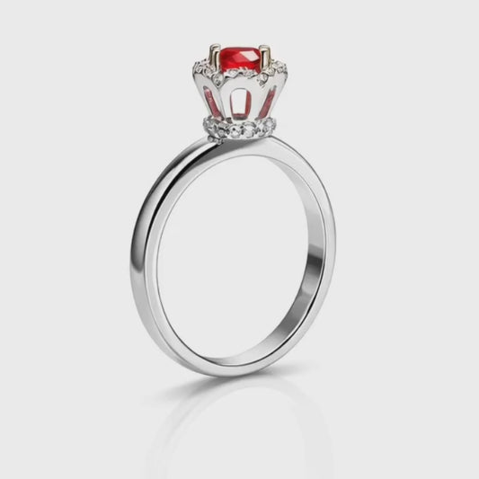 Silver Red CZ Halo Ring | 925 Sterling Silver