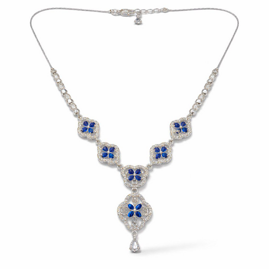 Silver Short Necklace with Blue Stones by Jauhari Jewellers