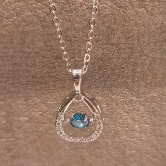 925 Sterling Silver Blue Dancing Stone Teardrop Pendant Necklace with CZ